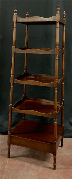 Lotto 595 | Étagère a cinque ripiani a scalare verso l'alto con montanti torniti e cassetto