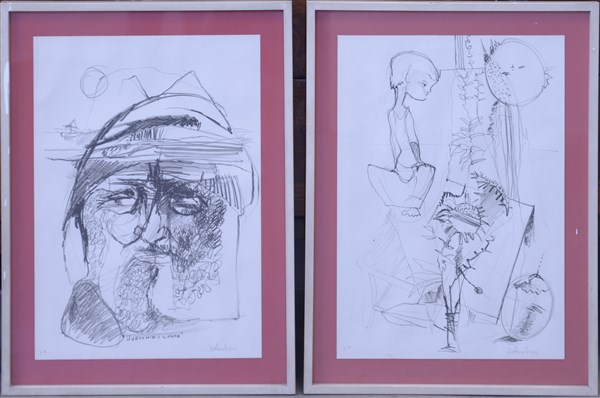Lotto composto da due litografie - prove d'artista (cm 50x35) "Il Vecchio e il mare" e "Senza titolo", firmate in basso a destra