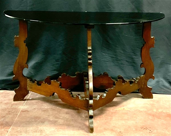 Lotto 609 | Console in legno con montanti sagomati riuniti da traverse, piano non pertinent