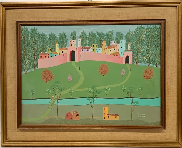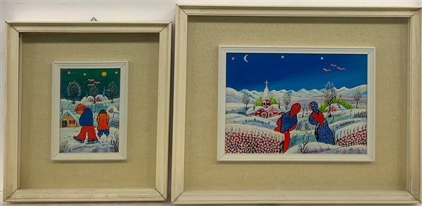 Lotto composto da tre dipinti Naif ad olio su masonite, di autori e misure dive
