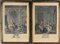Coppia di incisioni francesi a colori raffiguranti scene d'interno (cm 52x34) in cornice