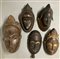 Arte africana, Gabon, lotto di cinque maschere in legno scolpito e pigmenti (h
