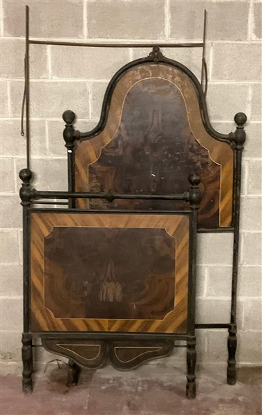 Lotto 655 | Letto singolo con struttura in ferro e pannelli in lamiera dipinta a finto legn