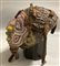 Arte africana, maschera con volto decorato da perline colorate e testa con juta intrecciata (h cm 32) (difetti)