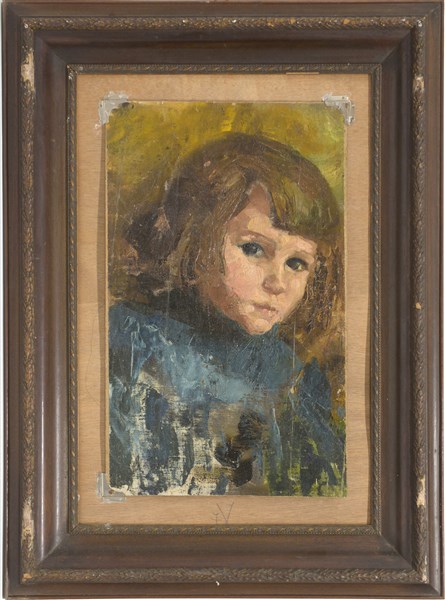 Ignoto del XIX Secolo "Ritratto di bimba" olio su tela applicata su masonite (cm 40x26) in cornice