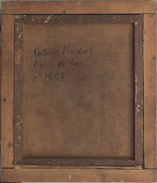 Scuola del XIX Secolo "Ritratto di Antonio Viviani" olio su tela (cm 74,5x62,5) Al retro: iscrizione. In cornice