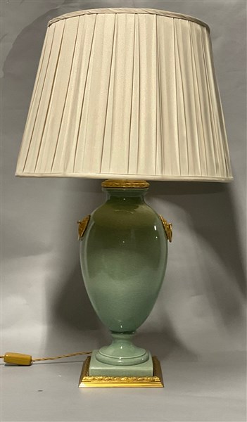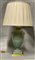 Lampada da tavolo a due luci in ceramica verde con guarnizioni e base in metall