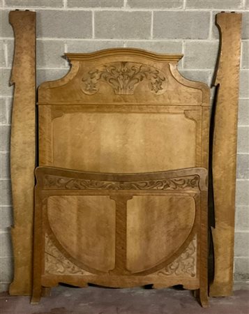 Letto a una piazza in legno chiaro con fregi floreali intagliati (difetti)