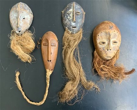 Arte africana, Congo, lotto di quattro piccole maschere Lega in legno scolpito,