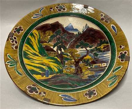 Piatto in porcellana decorato in policromia a paesaggio Cina, inizio sec. XX (d