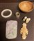 Lotto composto da sei oggetti tra cui una placca in pietra dura, un bracciale in giada, una giada in stile arcaico, un anello in metallo, un piccolo gruppo in giada, una ciotolina in pietra (misure diverse)