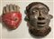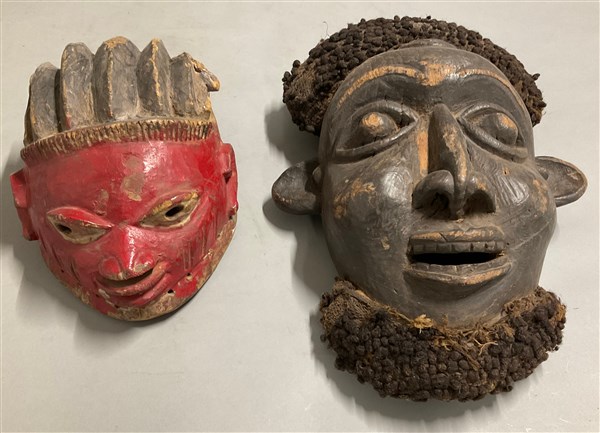 Arte africana, lotto di due maschere di etnie differenti, in legno scolpito e d