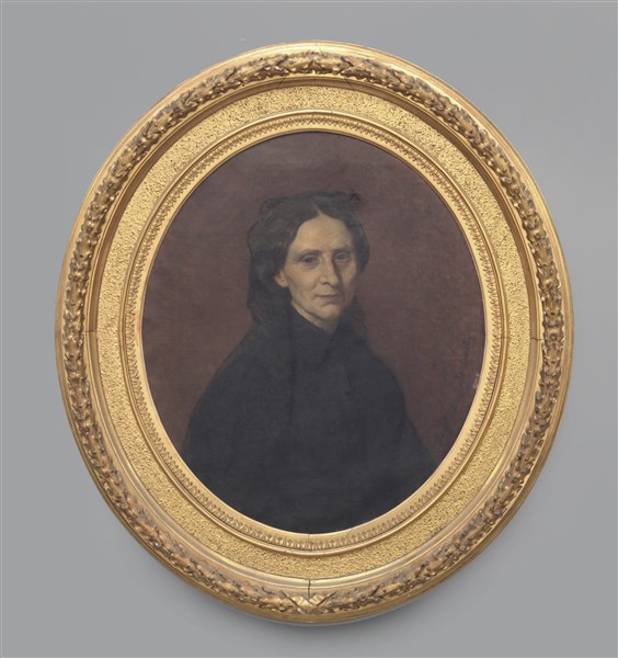 "Ritratto di donna" olio su tela (cm 72,5x61) Firmato a destra. In cornice in legno e pastiglia dorata