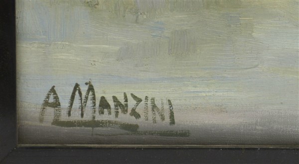 Lotto 757 | A. Manzini "Senza titolo", olio materico su tela (cm 55x71) firmato in basso a s