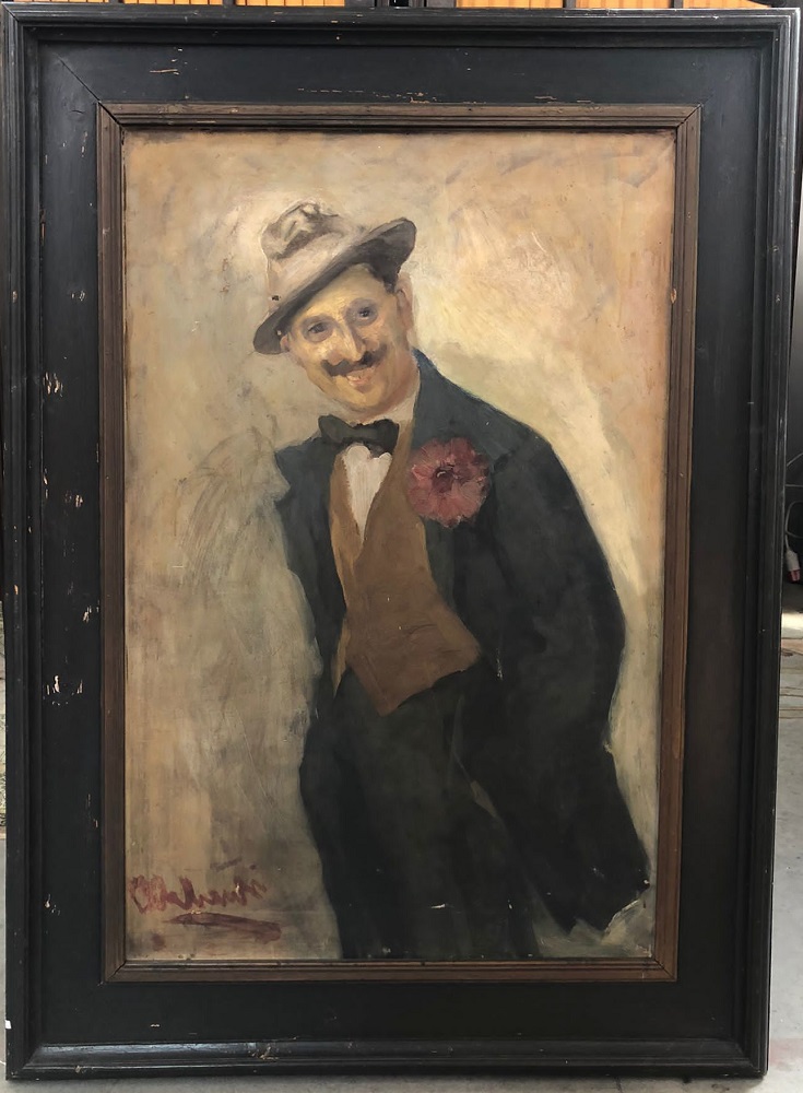 (Attribuito) "Ritratto maschile" olio su tela (cm 114x75) Firmato in basso a destra. In cornice (difetti e restauri)