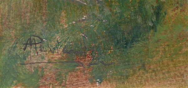 Pompeo Mariani "Nel bosco" olio su cartone (cm 26,5x52,5) Firmato in basso a si
