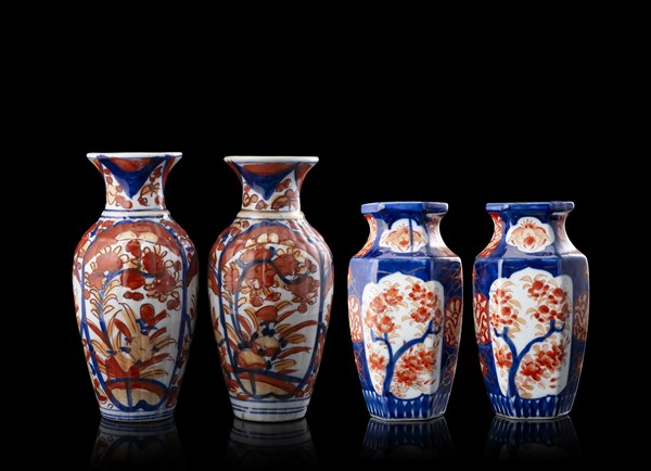 Lotto composto da due coppie di vasi Imari di cui una di forma esagonale Giappo