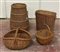 Lotto composto da quattro ceste di vimini unite ad alcuni giocattoli in legno (difetti e mancanze)