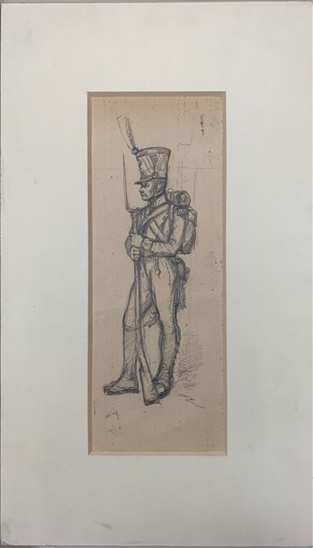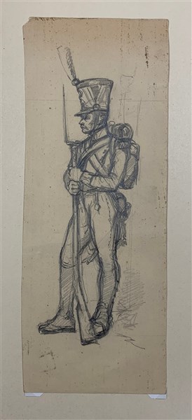 Ignoto del secolo XIX, "Studio per soldato", matita su carta, (cm 30x12)