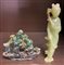 Una scultura in pietra dura verde unita ad una scultura in quarzo raffigurante