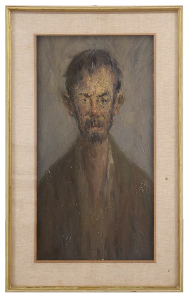 Firma indecifrata "Ritratto maschile", olio su masonite (cm 73x40), firmato in basso a sinstra, in cornice (difetti)