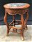 Tavolino tondo con fascia intagliata a foglie, gambe mosse riunite da traversa,