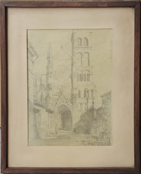 Ignoto del secolo XIX "Vedute di monumenti" tre disegni a matita nera su carta