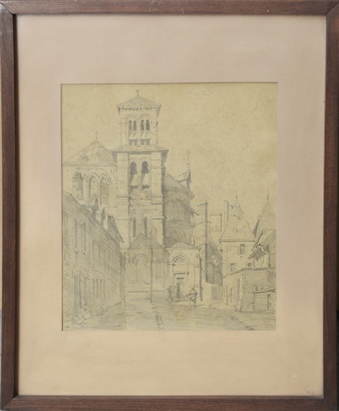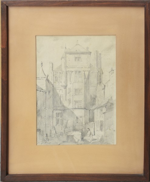 Ignoto del secolo XIX "Vedute di monumenti" tre disegni a matita nera su carta (mm 320x240 circa). In cornici