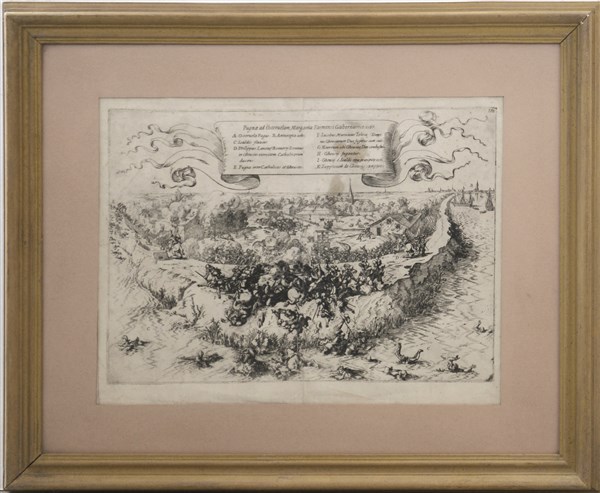 Johann Wilhelm Baur "Scene di battaglia" coppia di acqueforti (mm 293x414 all'im