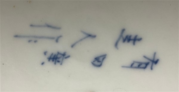 Lotto composto da un vaso in porcellana bianca e blu con decoro a paesaggio, du