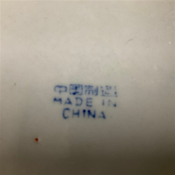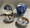 Lotto composto da un vaso in porcellana bianca e blu con decoro a paesaggio, due piattini polilobati a decorazione Imari ed un piatto decorato con pesce