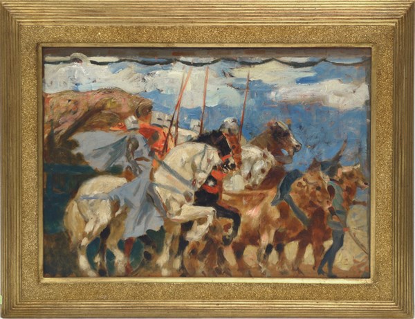 "Studio per Torneo" olio su cartone (cm 46x64) Firmato al retro. In cornice