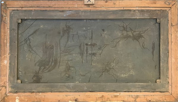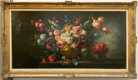 "Vaso di fiori" olio su tela (cm 60x120) Firmato in basso a sinistra. In cornice (difetti)