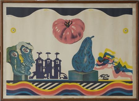 Concetto Pozzati "Senza titolo" stampa offset cm 44x64. In cornice (difetti)