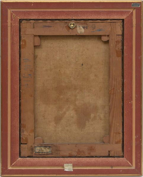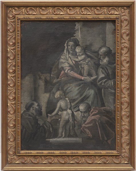 Ignoto "Madonna con Bambino e Santi" olio su tela (cm 48x35) In cornice (difett