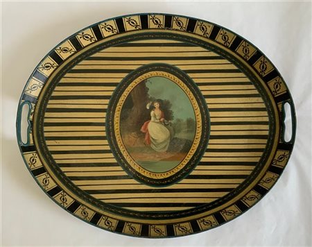 Vassoio in metallo dipinto (cm 46x37) (lievi difetti)