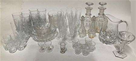 Lotto composto da numerosi bicchieri, contenitori e ciotole in vetro e cristallo molato (lievi difetti)