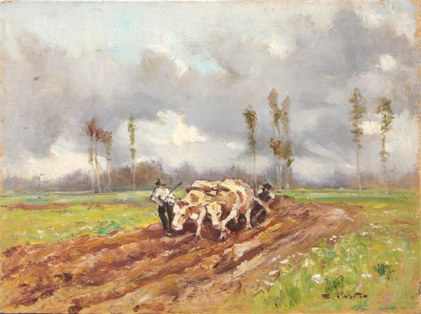 Sergio Pasetto "L'aratura" olio su tavola (cm 30x40) Firmato in basso a destra.