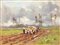 "L'aratura" olio su tavola (cm 30x40) Firmato in basso a destra. AL retro: firmato e titolato. (difetti)