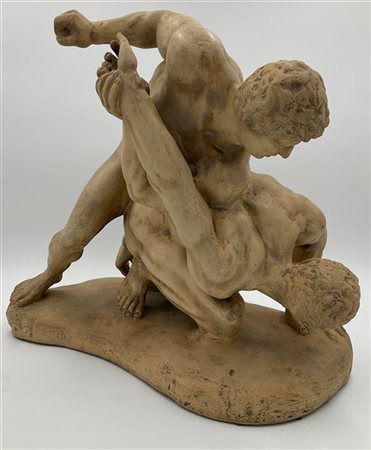Manifattura di Signa Scultura in terraglia raffigurante "Lottatori" (h cm 42) m