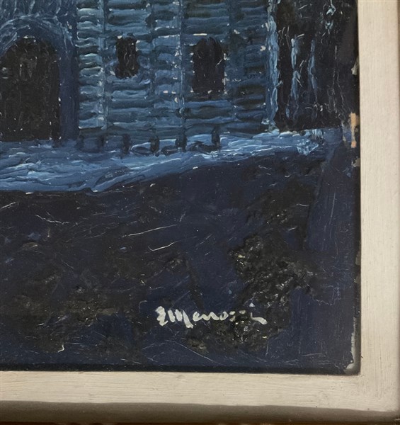 Firma indecifrata "Il Duomo di Monza di notte" olio su tavola (cm 60x38) firmat