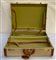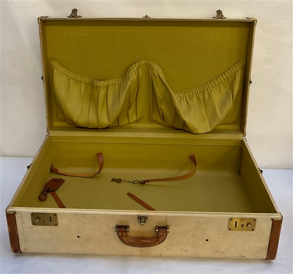 Set of parchment suitcases with leather borders composed of two cases and a keepall (defects, wear)