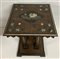 Tavolino quadrato in legno filettato in peltro, piano decorato al centro e ai l