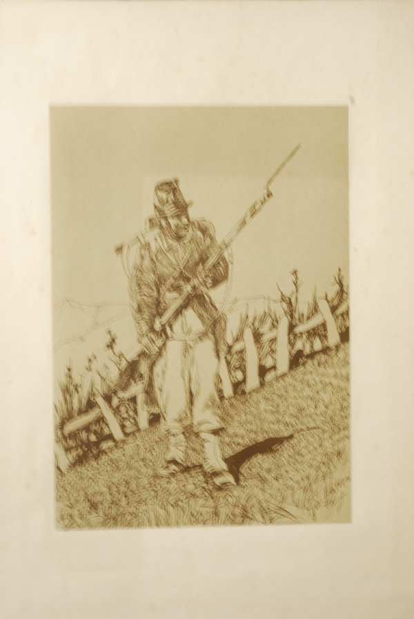 Giovanni Fattori (Livorno, 1825 - Firenze, 1908)GRANATIERE CHE IMPUGNA IL FUCILE Litografia. Firmato in lastra in basso a destra.mm. 480x325 (foglio); mm. 295x215 (lastra)