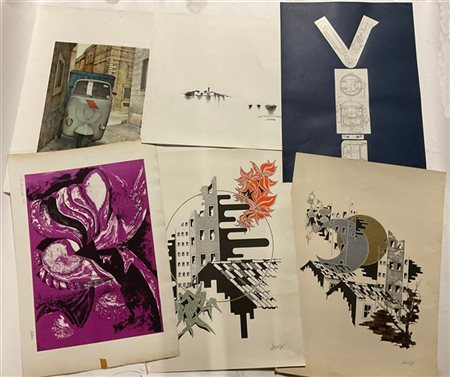Cartelletta contenente sei grafiche di soggetti, autori e misure diverse unite