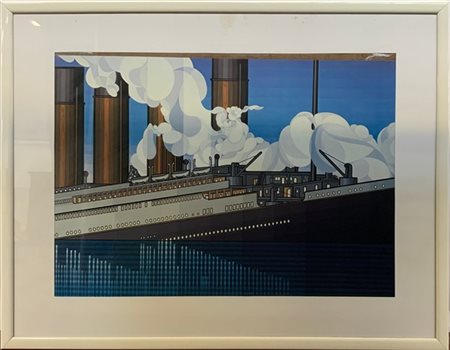 Stampa a colori raffigurante nave cm 47x65. In cornice (lievi difetti)