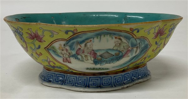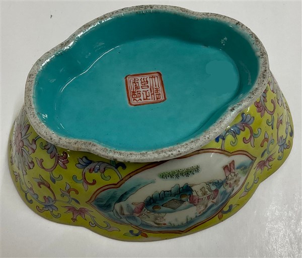 Ciotolina in porcellana gialla, inizio sec. XX (cm 17,5x13,5) (difetti)