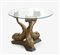 Tavolino con base in ottone raffigurante tre animali mitologici e piano tondo i