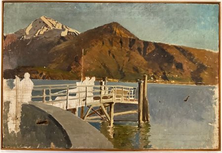 "Sul lago" olio su tela (cm 68x103) In cornice (gravi difetti e rotture)