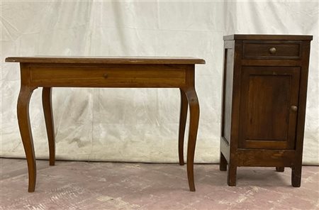 Lotto composto da un tavolino con fronte a un cassetto e un comodino (difetti)